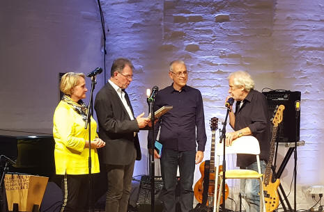 Von links: Uli Leiner Kulturamt der Stadt, Wolfgang Schmierer, Laudator